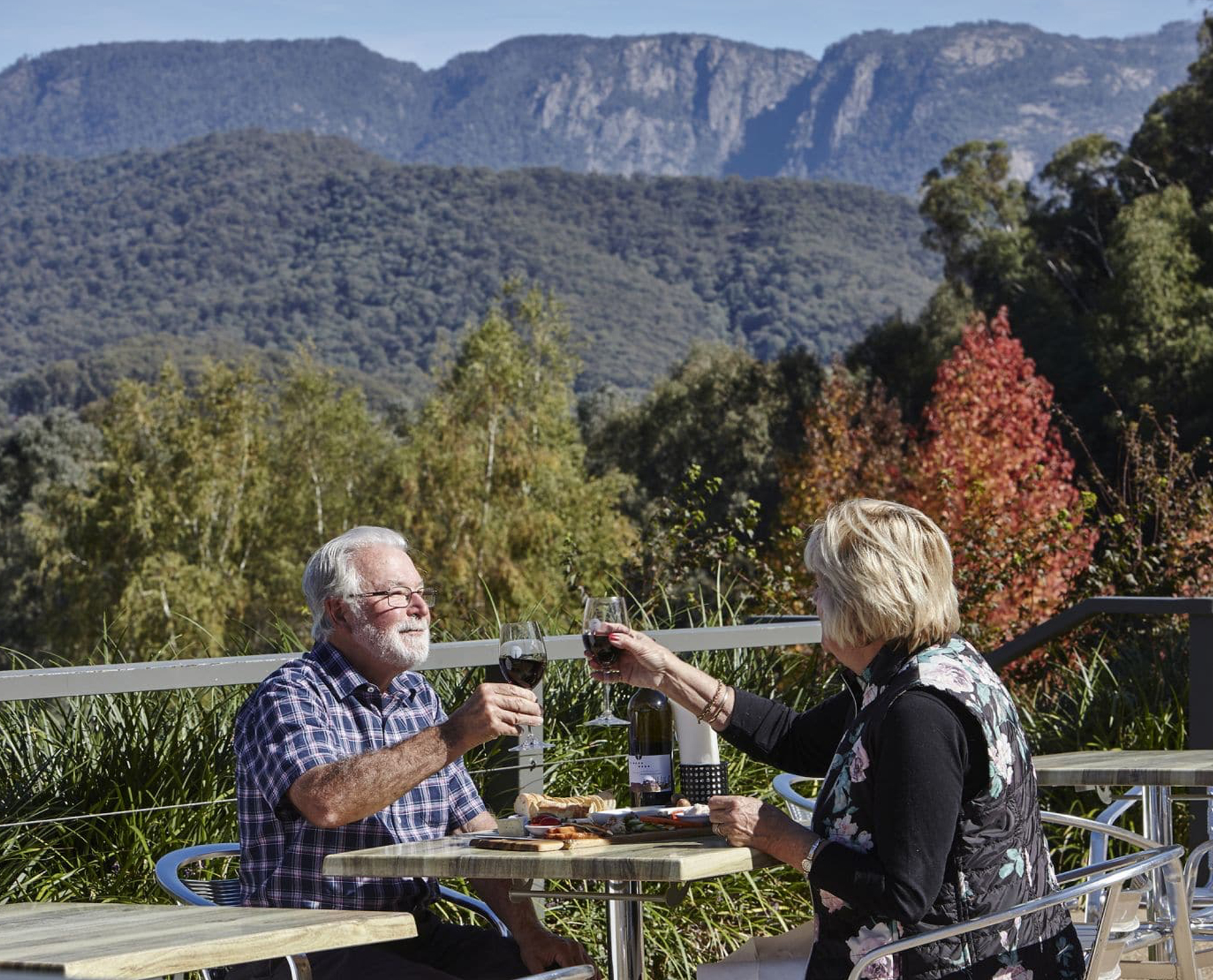 The Gorge Lookout across from the Chalet has views you won’t want to miss. Have a picnic on the clifftop then enjoy the short Gorge Heritage Walk to the top of Crystal Brook Falls. If you’ve come in winter, go to the Dingo Dell Cafe (check open times), which also hires snowshoes.